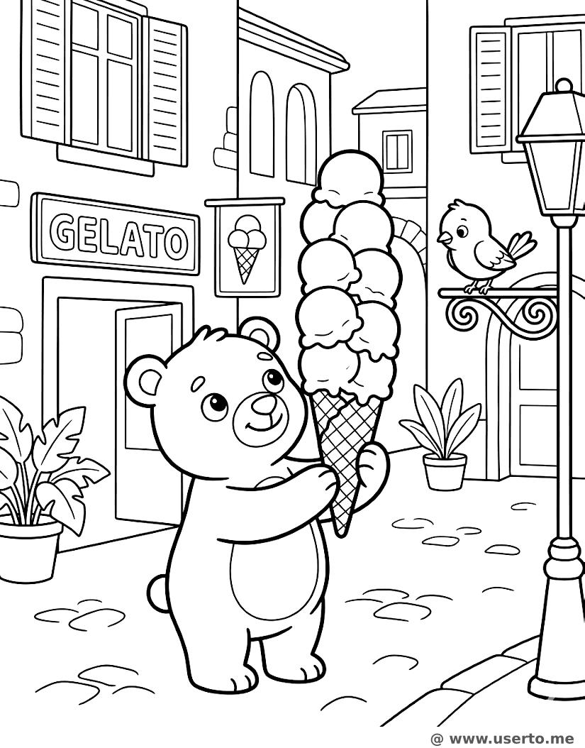 A Grande Torre de Gelato - AI Coloring Book: To Me Grátis