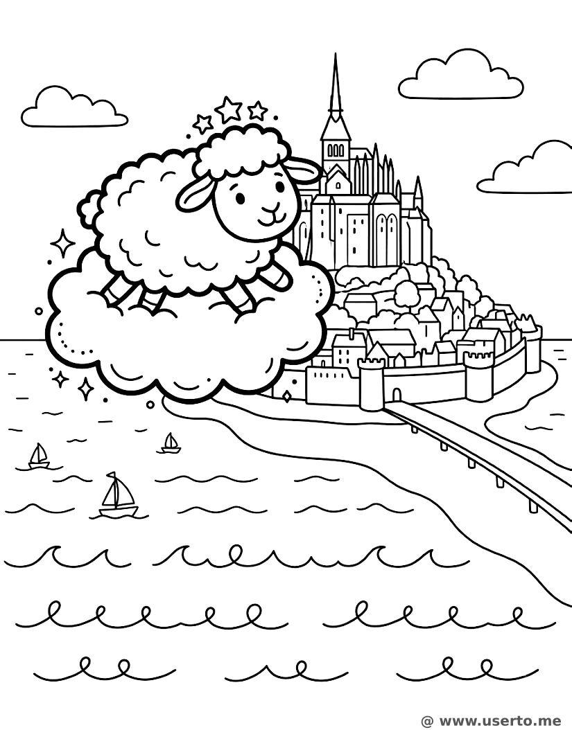 A Ovelha Mágica de Mont Saint-Michel - AI Coloring Book: To Me Grátis