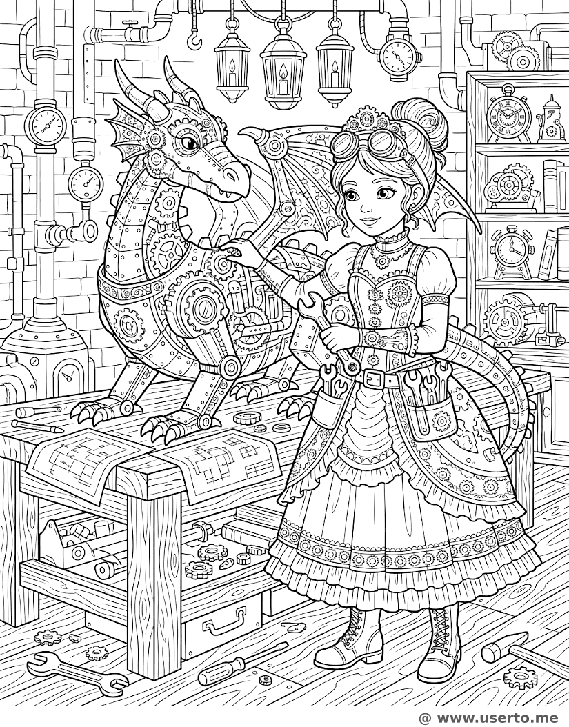A Princesa Mecânica Steampunk - AI Coloring Book: To Me Grátis