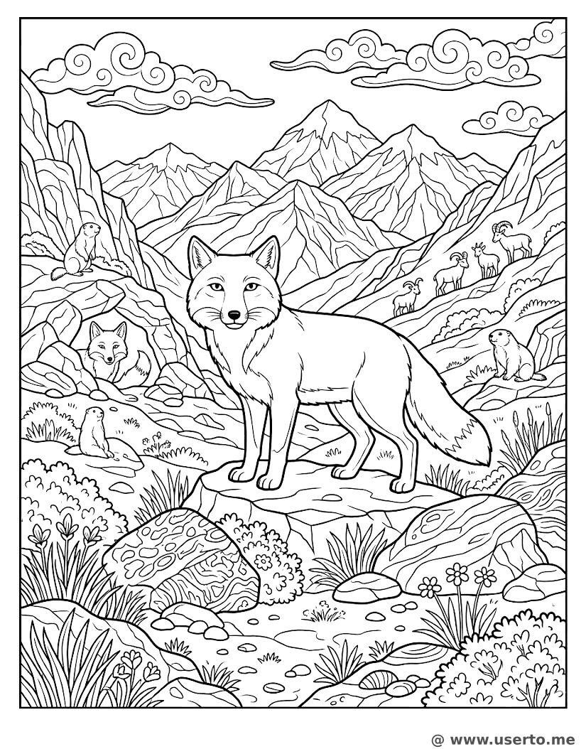 A Raposa Rabugenta das Montanhas - AI Coloring Book: To Me Grátis