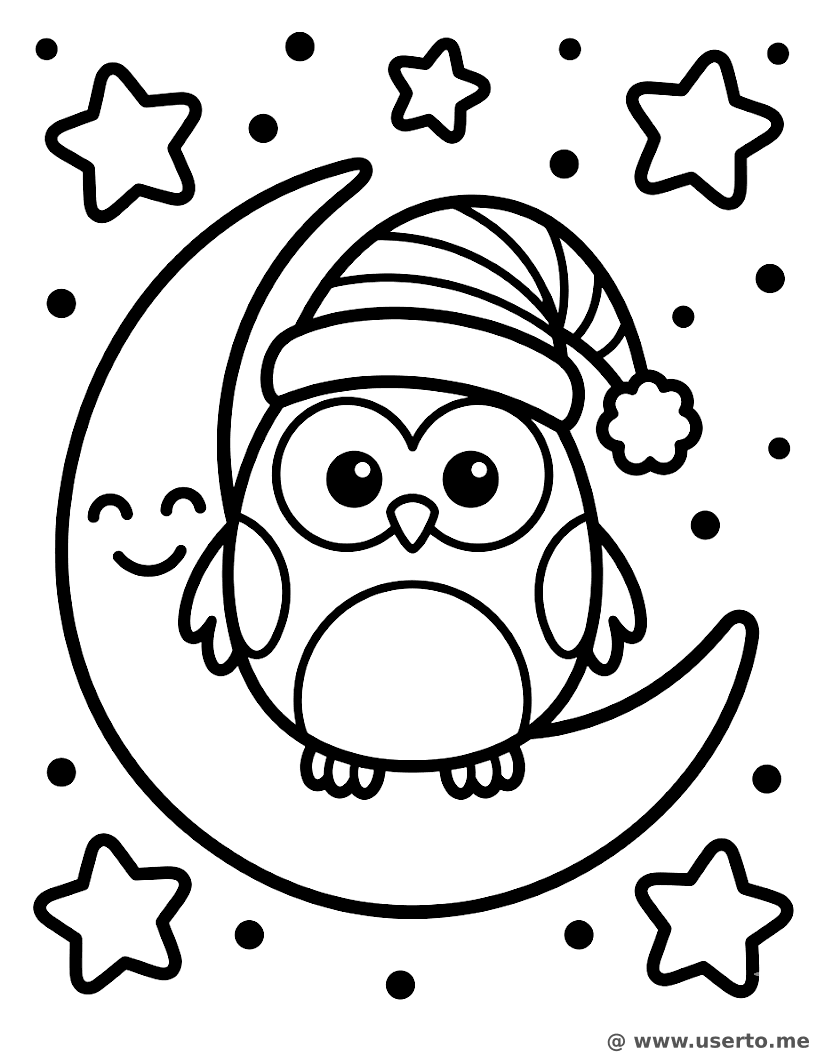 A coruja sonolenta na lua crescente - AI Coloring Book: To Me Grátis