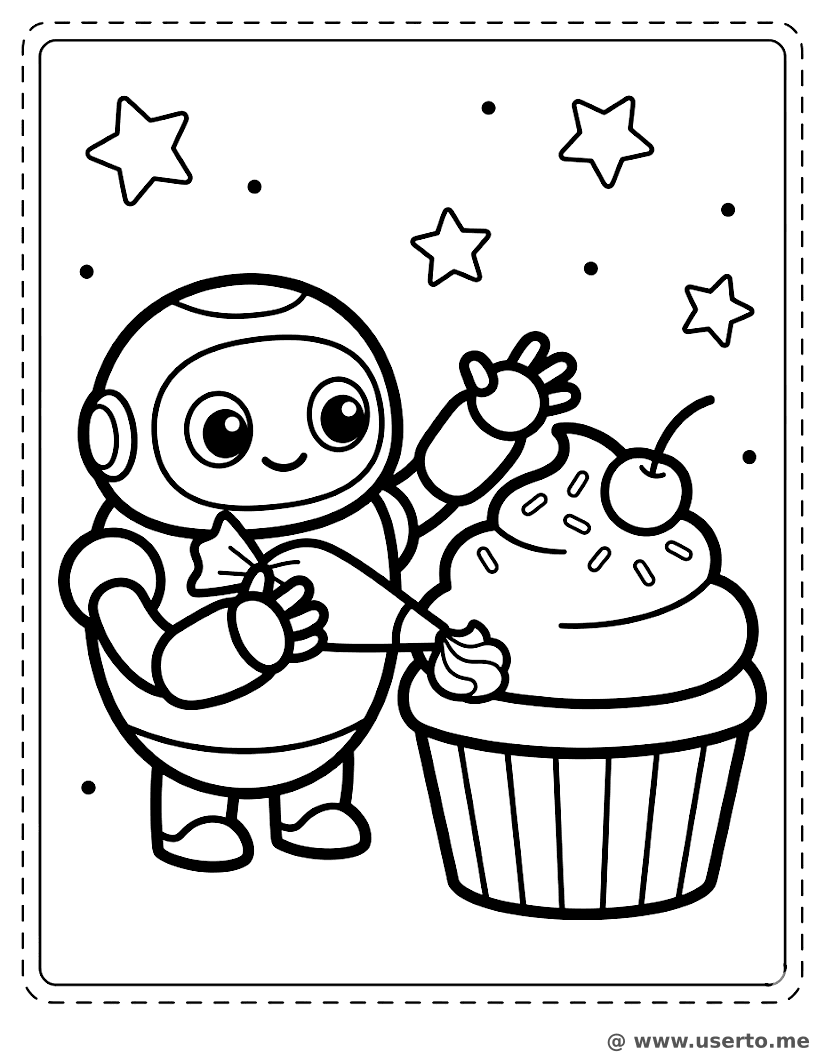 A festa de cupcake do pequeno robô - AI Coloring Book: To Me Grátis