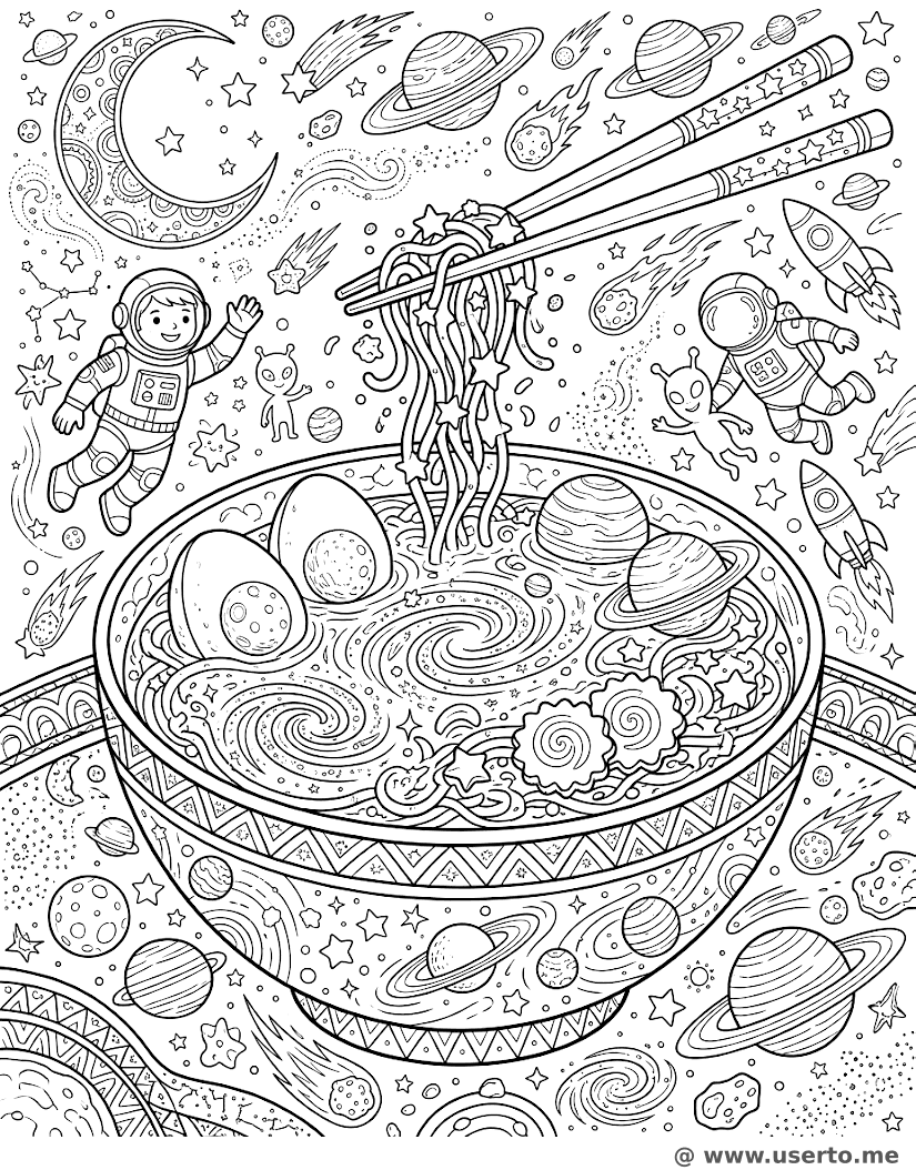 Aventura Galáctica de Ramen - AI Coloring Book: To Me Grátis