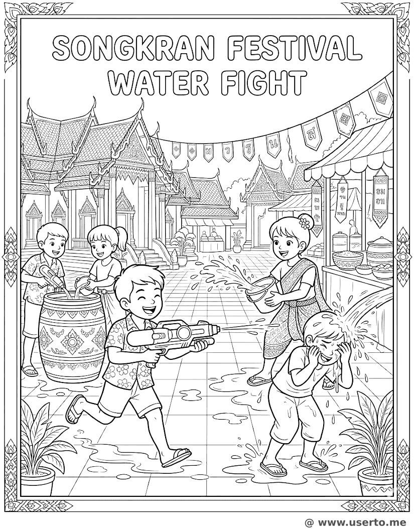 Guerra de Água do Festival Songkran - AI Coloring Book: To Me Grátis