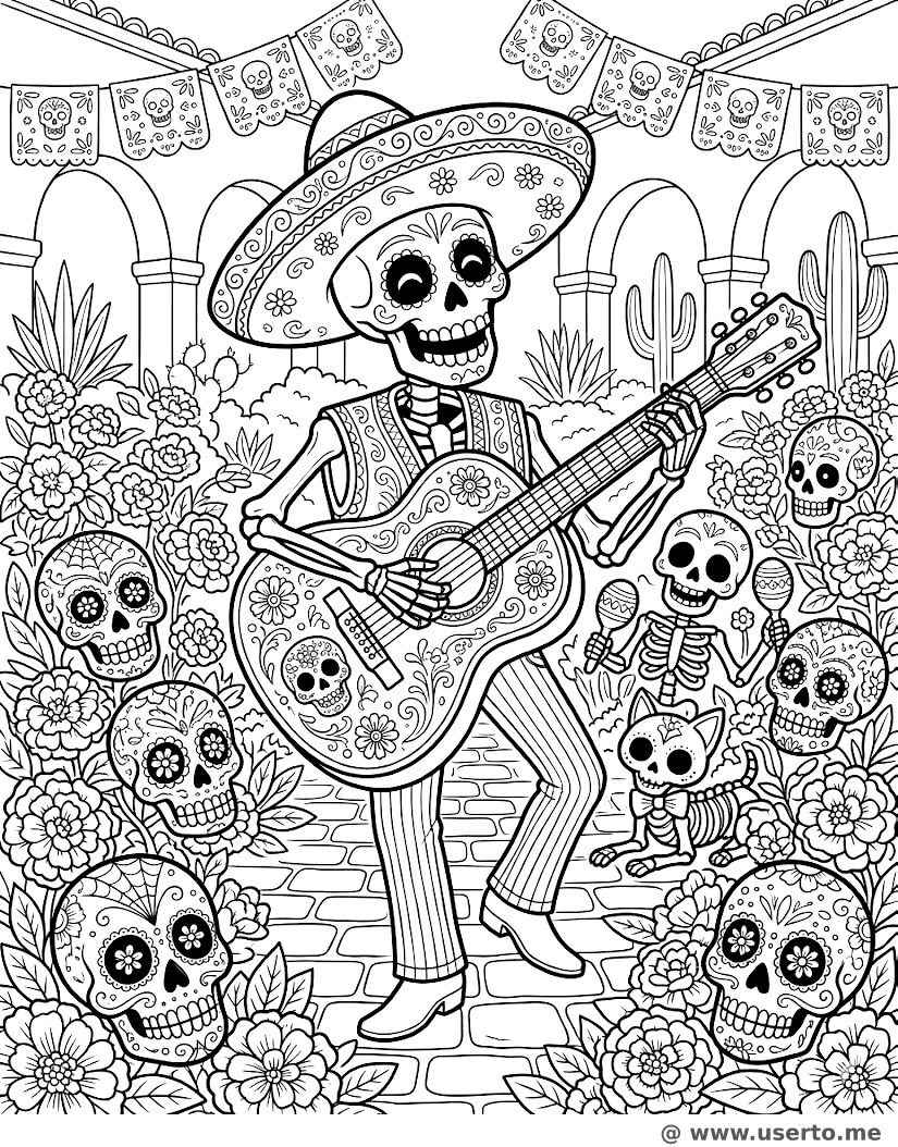 Guitarrista do Dia dos Mortos - AI Coloring Book: To Me Grátis