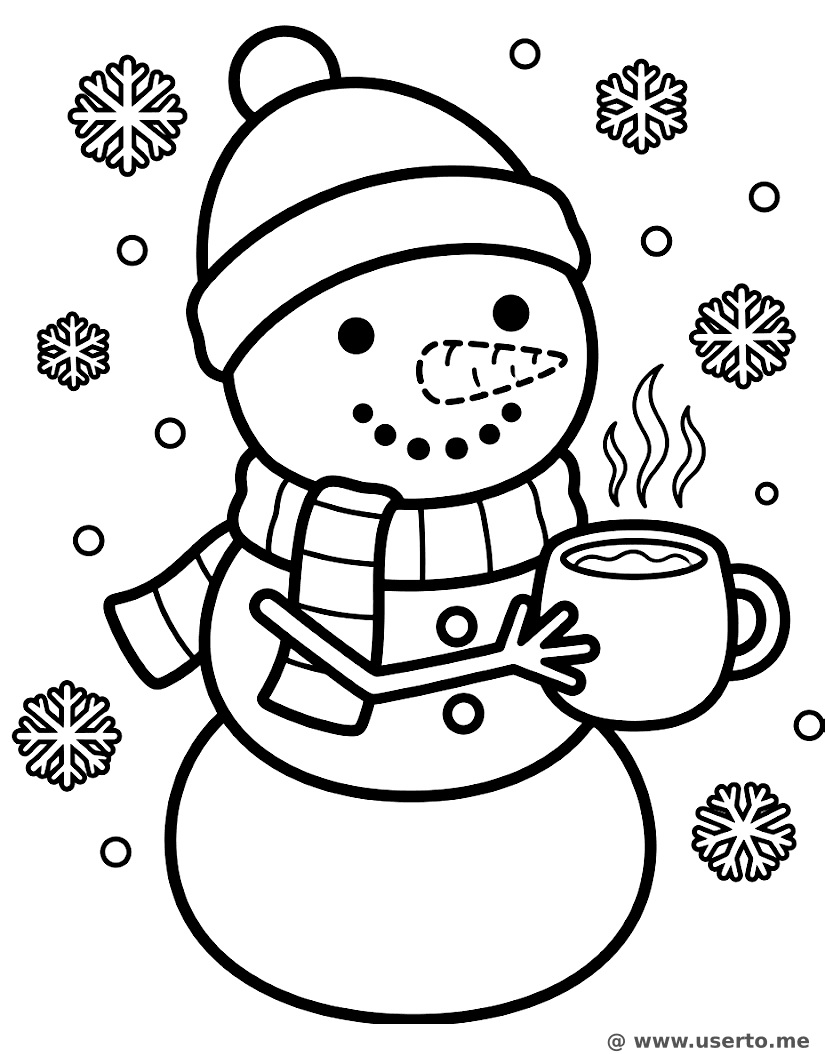 descriptionO Chocolate Quente do Boneco de Neve Coloring Page Description