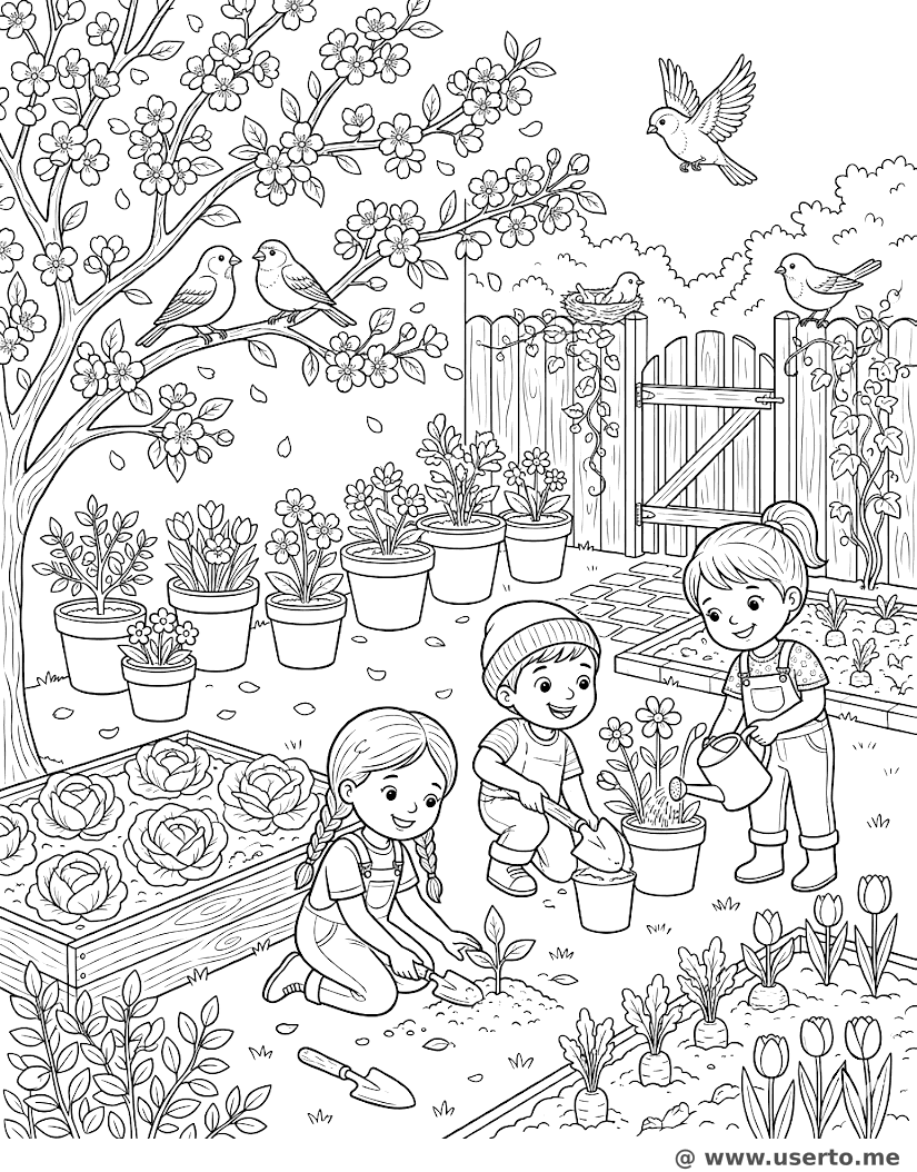 O Despertar do Jardim na Primavera - AI Coloring Book: To Me Grátis