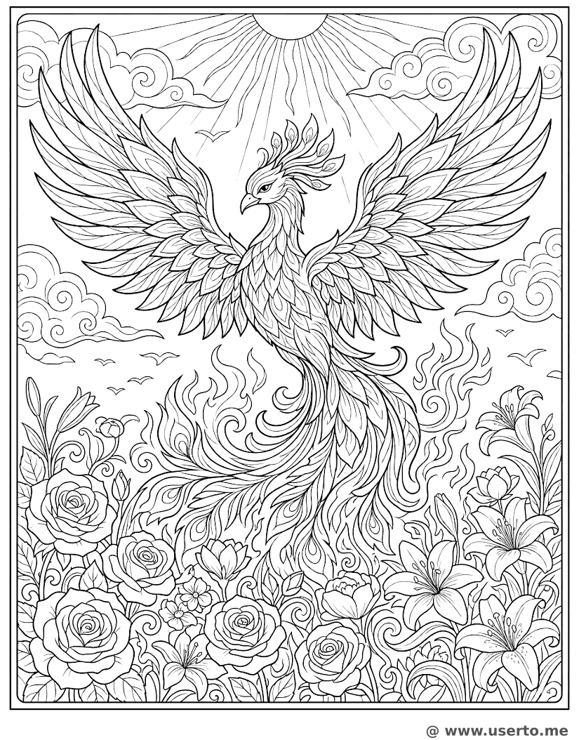 O Renascimento da Fênix de Flores - AI Coloring Book: To Me Grátis