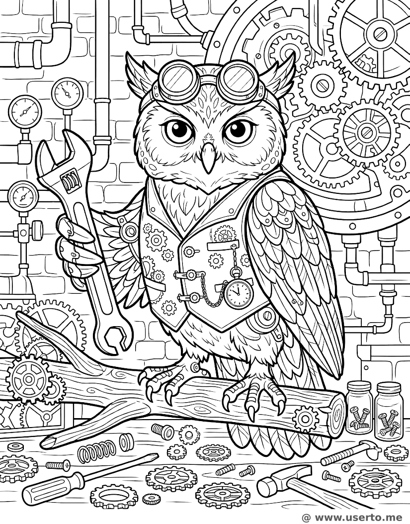 Descubra a espetacular página agradável para colorir maravilhosamente chamada O Sábio Coruja Inventor, projetada de forma muito exclusiva em torno do sempre fascinante tema impressionante de Personagens Fofos. Apresentando os notáveis coruja, steampunk, inventor, engrenagens, oficina, esta folha para colorir imprimível é absolutamente e totalmente gratuita, perfeitamente e cuidadosamente otimizada para ótimo papel padrão A4 ideal. As amáveis crianças adoram desfrutar de grande e infinita diversão criativa altamente estimulante enquanto rapidamente desenvolvem capacidades motoras excelentes diariamente em suas amorosas casas. Imprima para atividades maravilhosas, construtivas e estupendas hoje mesmo.