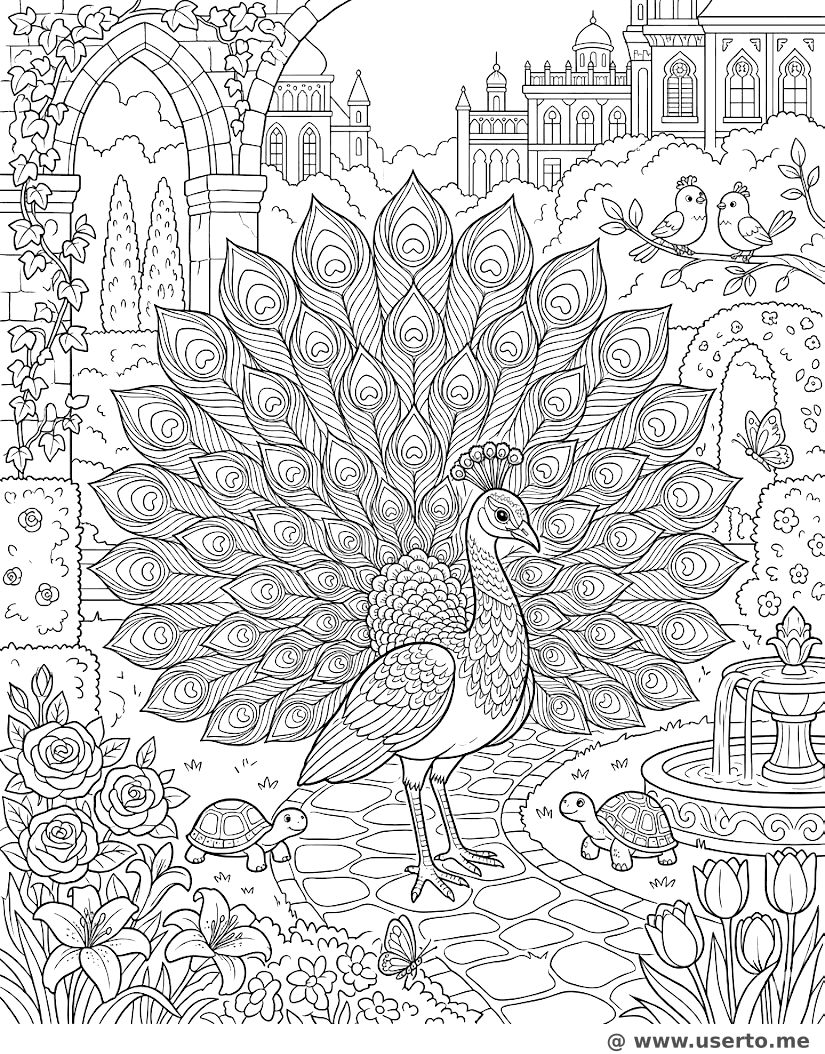 O leque de penas do majestoso pavão - AI Coloring Book: To Me Grátis