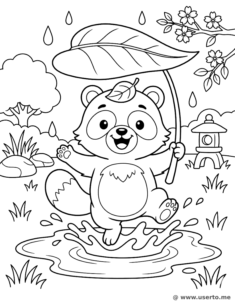 O passeio do Tanuki no dia de chuva - AI Coloring Book: To Me Grátis