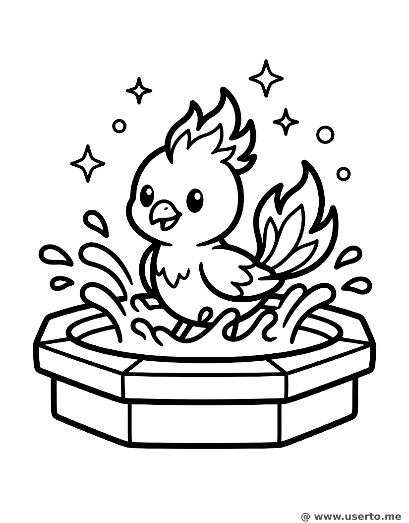 O primeiro banho da fénix bebé - AI Coloring Book: To Me Grátis