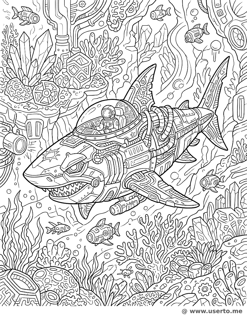 Piloto de Tubarão Mecânico das Profundezas - AI Coloring Book: To Me Grátis