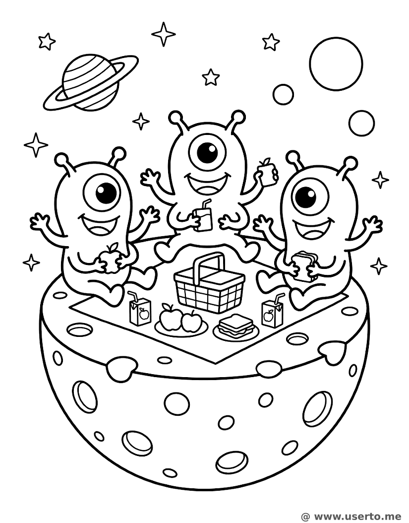 Piquenique de Queijo dos Monstros Espaciais - AI Coloring Book: To Me Grátis