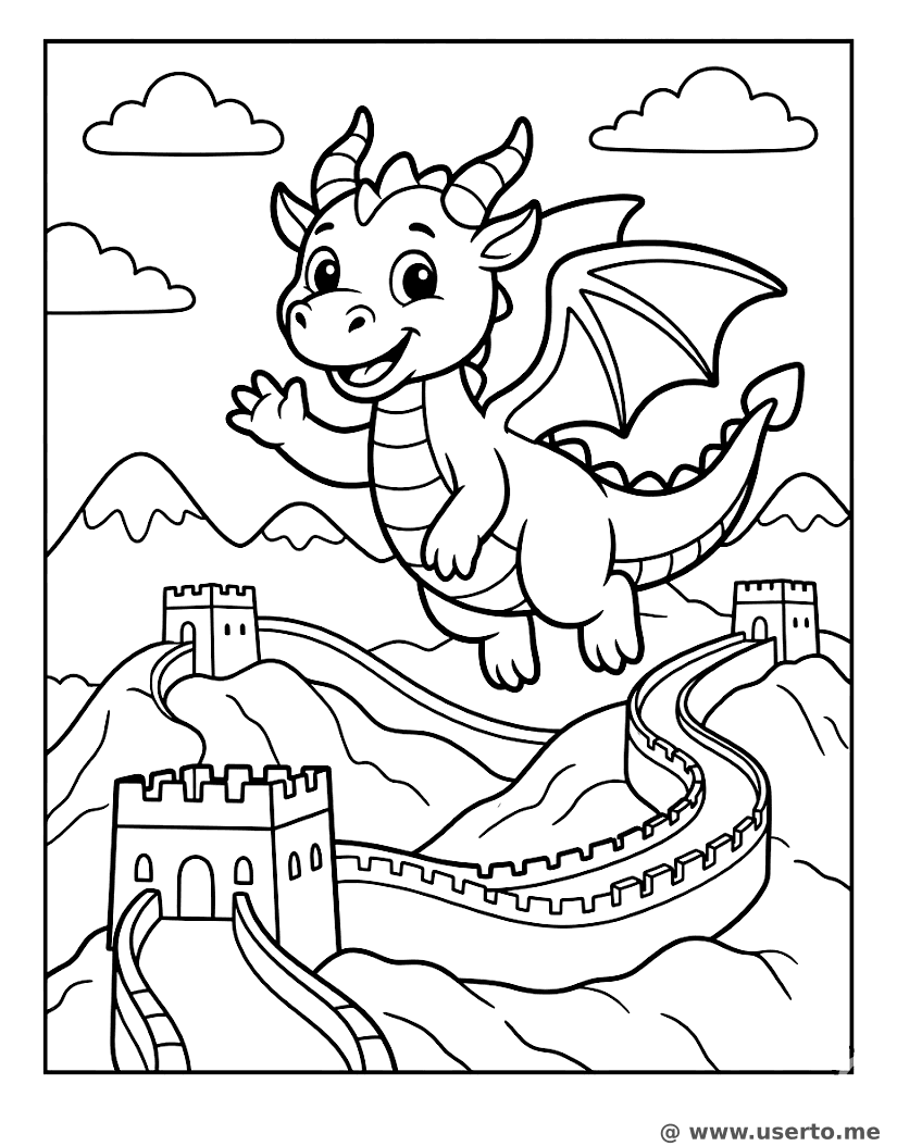 descriptionVoo do dragão sobre a Grande Muralha Coloring Page Description