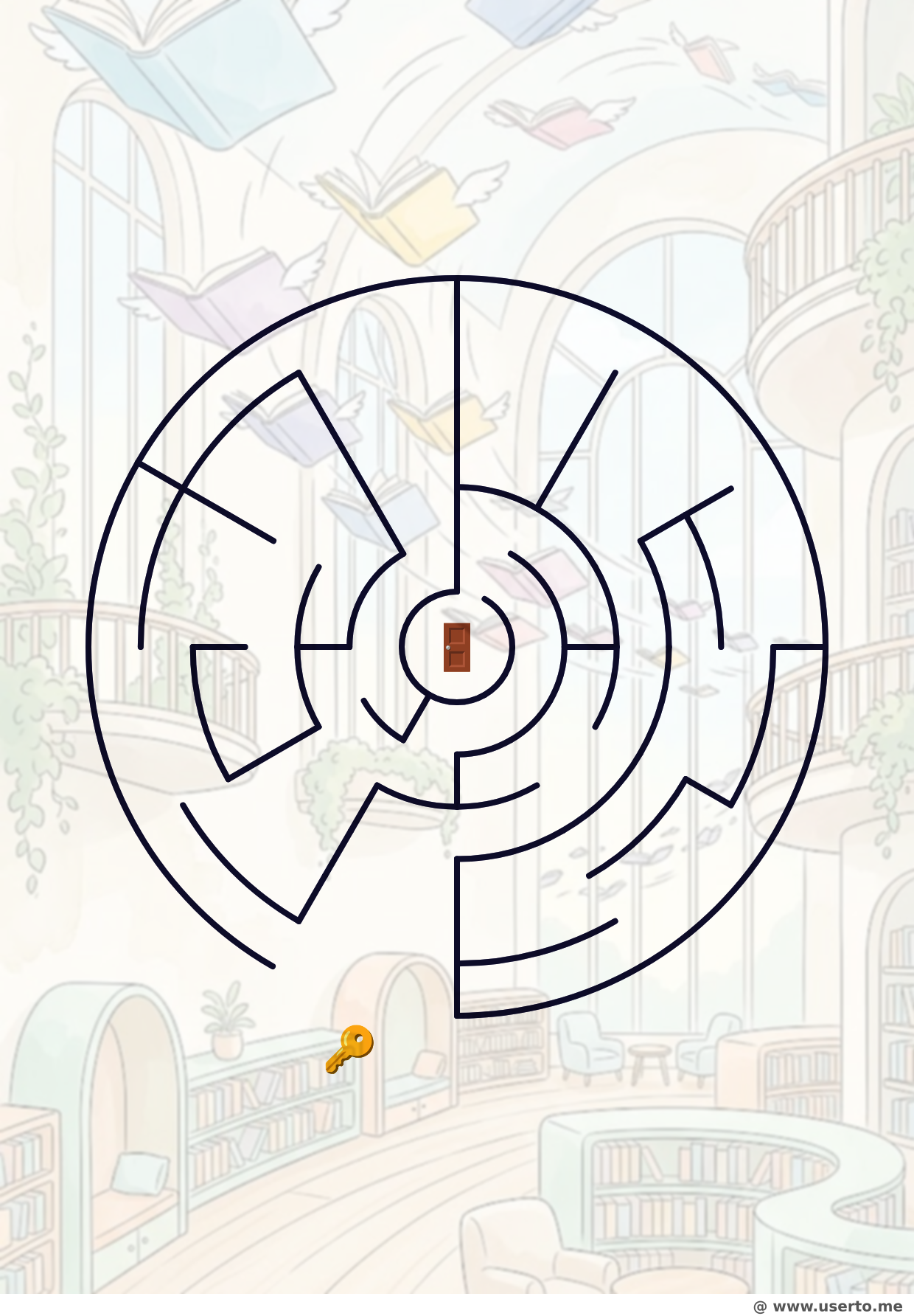 Prepare-se com enorme entusiasmo para o sensacional desafio divertidíssimo com o lindo quebra-cabeça de esplêndido labirinto A Biblioteca dos Livros Voadores, que é uma incrível e formidável atividade valiosa imprimível brilhantemente em nossa esplêndida e vasta coleção excelente. Apresentando criativos designs de empolgantes biblioteca, livros, chave mágica, jardim secreto, encantado, circular, tem um maravilhoso belíssimo formato imaculado incrível, facilitando a rápida impressão deslumbrante na dimensão padronizada excelente do tamanho adorável de notável folha limpa de excelente papel A4. Rastrear e percorrer rapidamente do início incrível até o fim mágico treina cérebro maravilhoso perfeitamente e de bom grado.