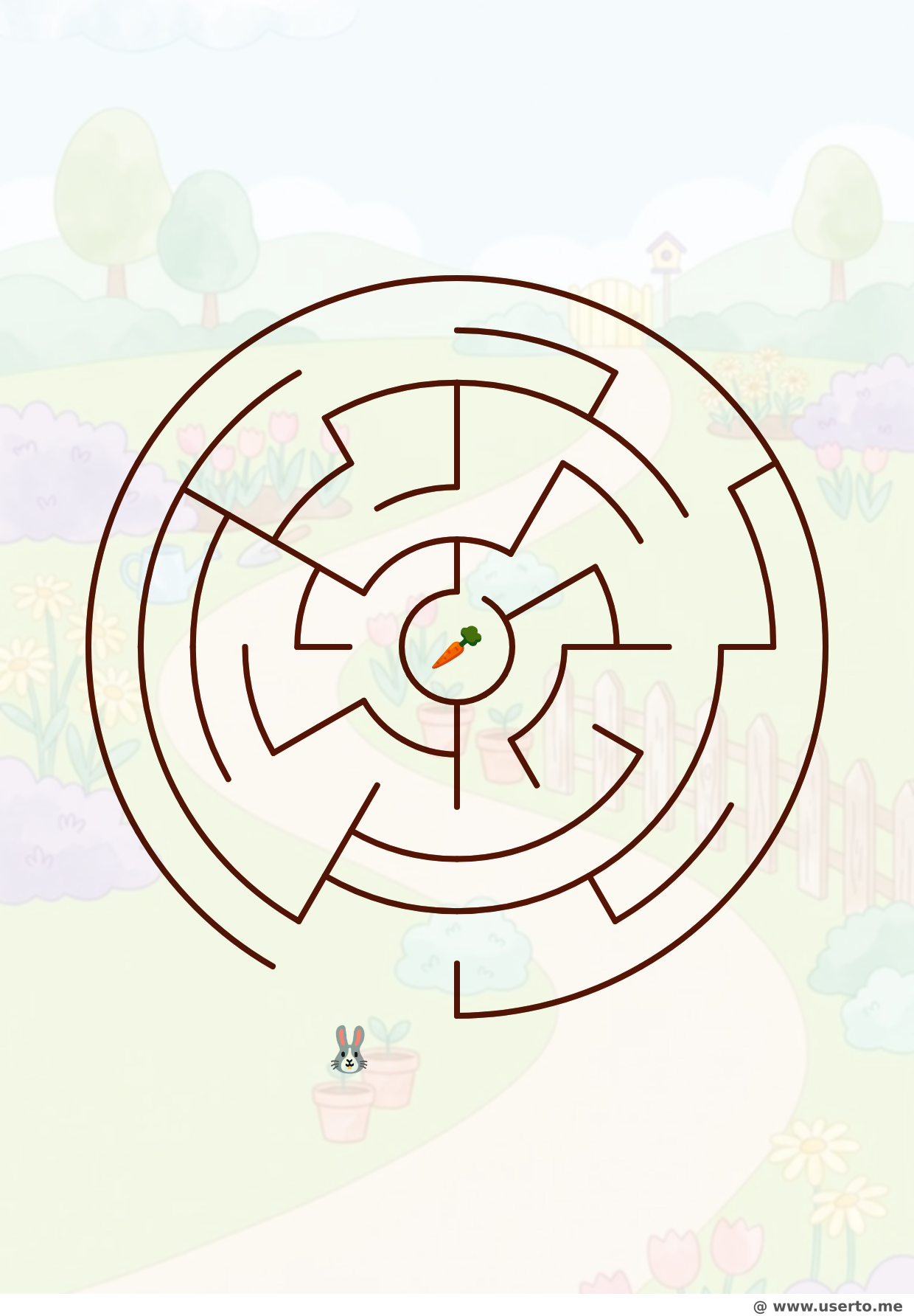 Prepare-se com enorme entusiasmo para o sensacional desafio divertidíssimo com o lindo quebra-cabeça de esplêndido labirinto O caminho do jardim do coelhinho, que é uma incrível e formidável atividade valiosa imprimível brilhantemente em nossa esplêndida e vasta coleção excelente. Apresentando criativos designs de empolgantes coelhinho, jardim, fácil, simples, animais, circular, tem um maravilhoso belíssimo formato imaculado incrível, facilitando a rápida impressão deslumbrante na dimensão padronizada excelente do tamanho adorável de notável folha limpa de excelente papel A4. Rastrear e percorrer rapidamente do início incrível até o fim mágico treina cérebro maravilhoso perfeitamente e de bom grado.