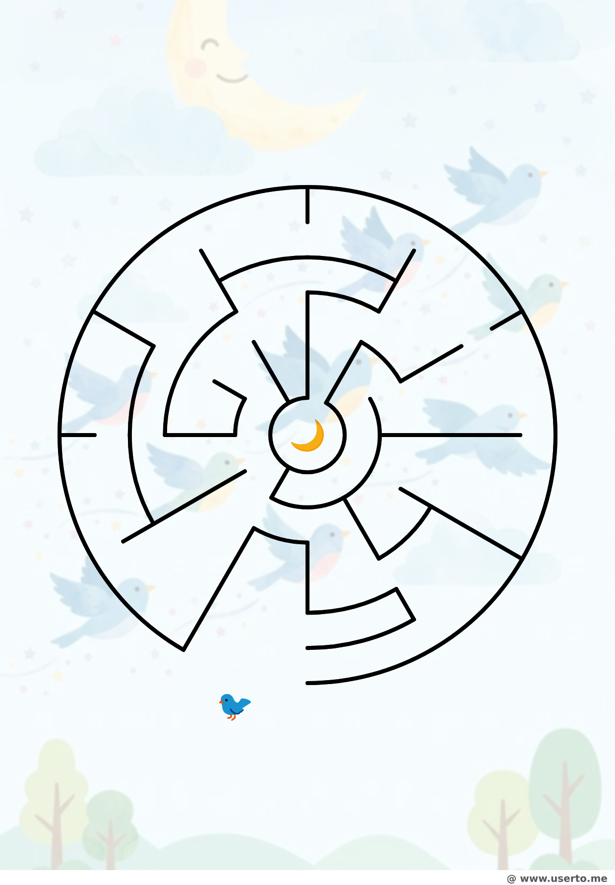 Prepare-se com enorme entusiasmo para o sensacional desafio divertidíssimo com o lindo quebra-cabeça de esplêndido labirinto O voo do pássaro azul sob as estrelas, que é uma incrível e formidável atividade valiosa imprimível brilhantemente em nossa esplêndida e vasta coleção excelente. Apresentando criativos designs de empolgantes pássaro, estrelas, lua, noite, celestial, circular, tem um maravilhoso belíssimo formato imaculado incrível, facilitando a rápida impressão deslumbrante na dimensão padronizada excelente do tamanho adorável de notável folha limpa de excelente papel A4. Rastrear e percorrer rapidamente do início incrível até o fim mágico treina cérebro maravilhoso perfeitamente e de bom grado.